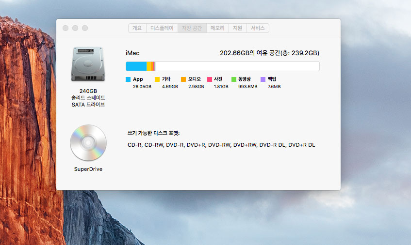 맥os 엘캐피탄 설치됨